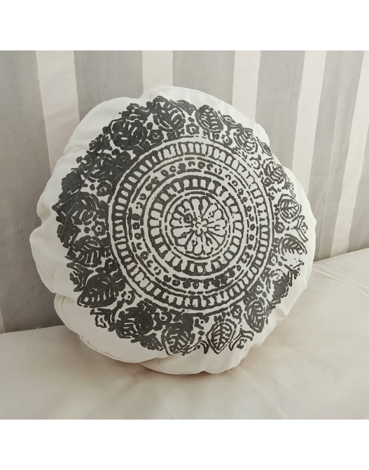 Almohadón de lona estampado algodón 100%, con cierre, atraque de boton forrado, relleno de gomaespuma y funda de relleno de entretela .